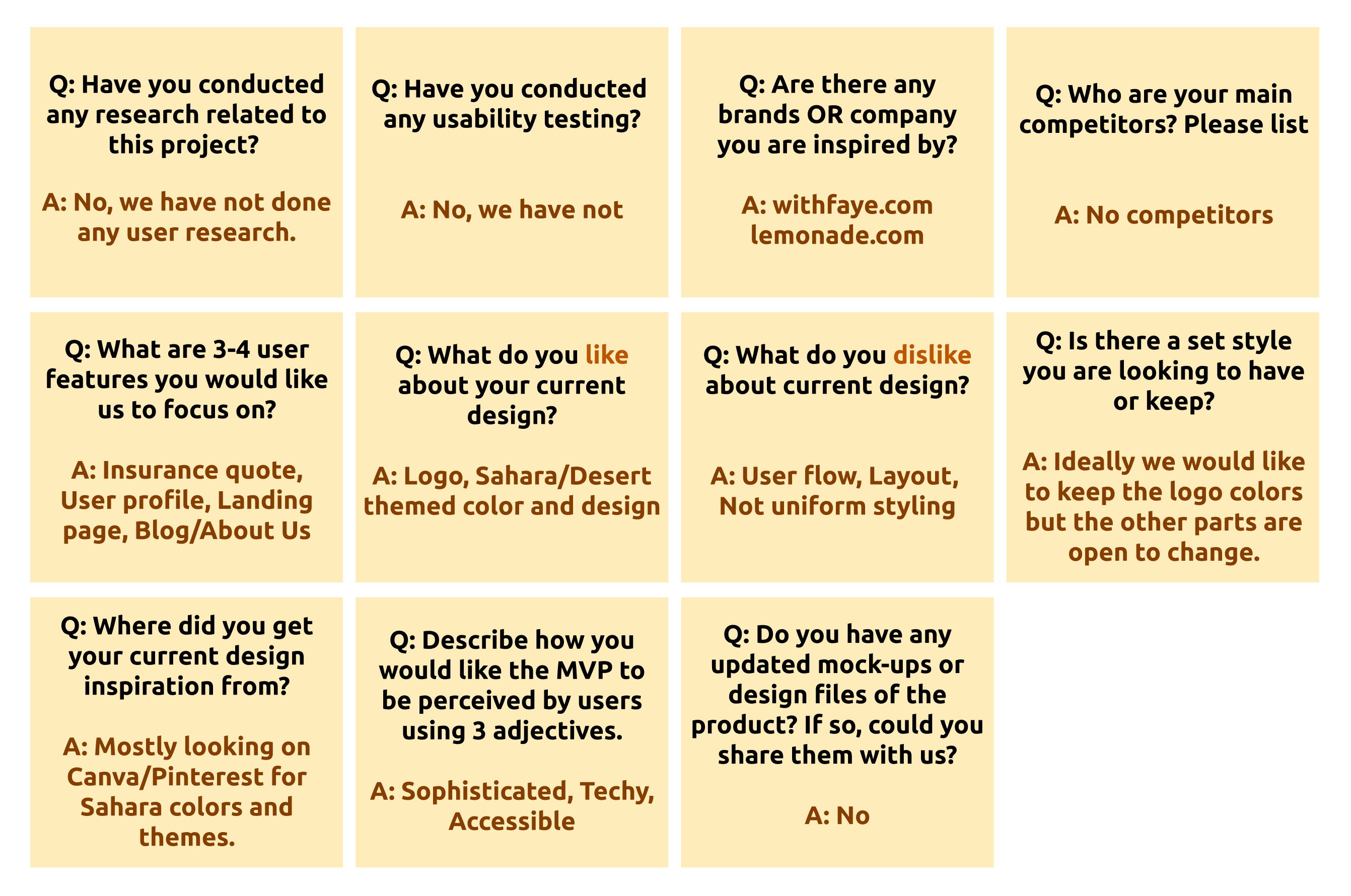 I converted a client questionnaire from Airtable to sticky notes to make it easy for everyone to access and review. The client also provided us with information regarding the current requirements of Bedouin and the user stories that they wanted to focus on. The main takeaways were as followed: