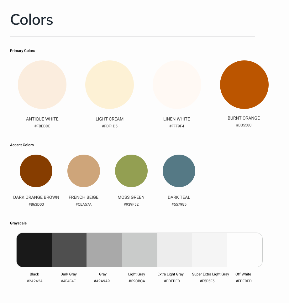To maintain consistency across the pages, my team and I built out a style guide including a color palette, UI elements, typography styles, grid system, components, illustrations, and iconography. Using the client’s existing color palette, we developed a similar palette with slight tweaks for improved readability and accessibility.